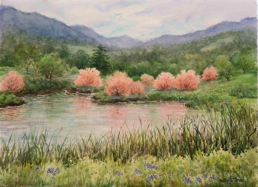 | "POND WITH BLOOMING TAMARAC TREES" |